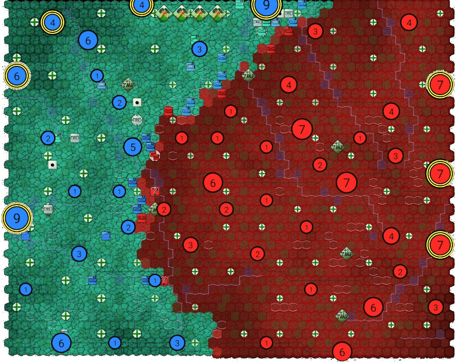 — Several Germans units had suffered heavy losses during the two months of fighting prior to Falaise operations, this is factored in as a lower German replacements, some lost HPs, and overall weaker German units.
