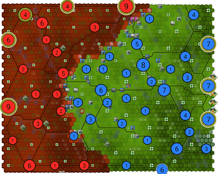 CAMPAIGN SPECIFIC FEATURES: Various resources can be requested from Resource Depots (located on the right edge of the map). During the Nighttime turn the Allies have limited movement and no aerial strikes, while Germans have almost full movement.