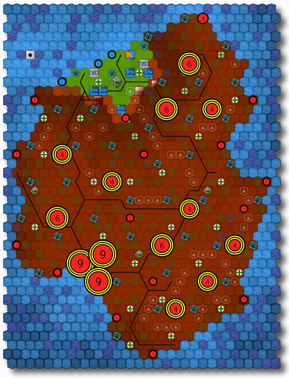 The generic airfields of the underlying game-engine are not really suitable on this particular physical scale, but since they are such a popular game mechanics, they are included to allow airlifting zero or one HP units to safety and enable gnerals hopping from airfield to airfield.